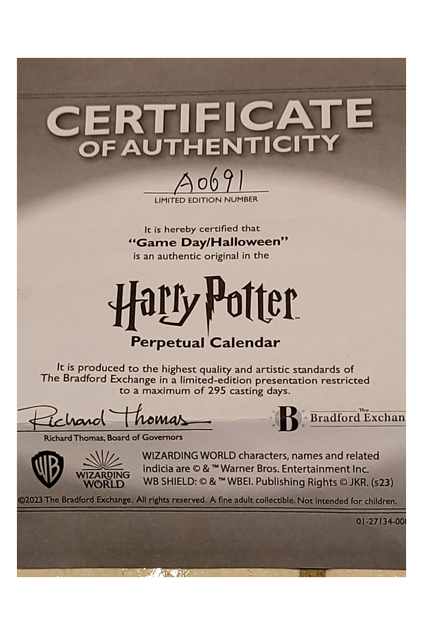 Categories: Select a Category Barbie Disney Daddy's Long Legs Danbury Mint Franklin Mint Harry Potter Royal Doulton Harry Potter Harry Potter Village - Dervish & Banges + Sweeping Man - Hawthorne Village collection– Chip - Braford Exchange $60.00 Add To Cart Added! Harry Potter Hogwarts House Candle - Bradford Exchange w/ COA – Issue #3 $70.00 Add To Cart Added! Harry Potter Hawthorne Village Collection Weasleys Wizard Wheezes LIGHTED $130.00 Add To Cart Added! Harry Potter - Game Day & Halloween Bradford Exchange Pepetual Calendar series with COA - Ltd Edition $150.00 Add To Cart Added! Universal Studios Harry Potter Gryffindor Scarf w/ Tag & 24oz Tumbler Set NEW $80.00 Add To Cart Added!